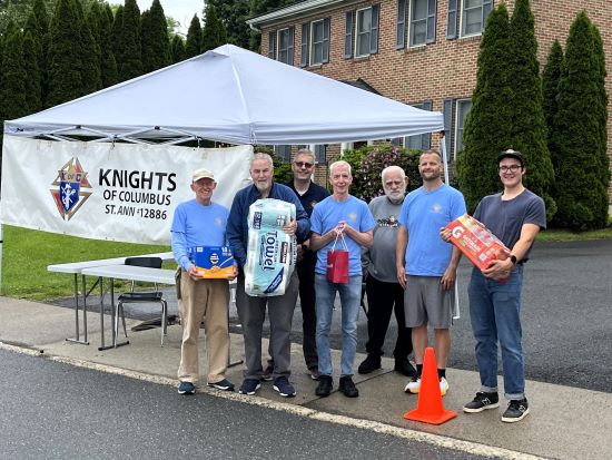 The May 18th Drive Thru Collection brought a bit of sunshine to a dreary day! Thank you to all who came out to drop off food and baby and mom supplies for those in need in our local community. Our Knights of Columbus always show their generosity of spirit as they take time to plan and volunteer to help collect these items. What may seem like a simple everyday item like paper towels or diapers to us is an important gift to another–and we share God’s love and light through these community connections. Thank you! (Donated items were delivered to the Ecumenical Food Kitchen, the Allentown Rescue Mission and the Cay Galgon Life House for moms and baby items.)